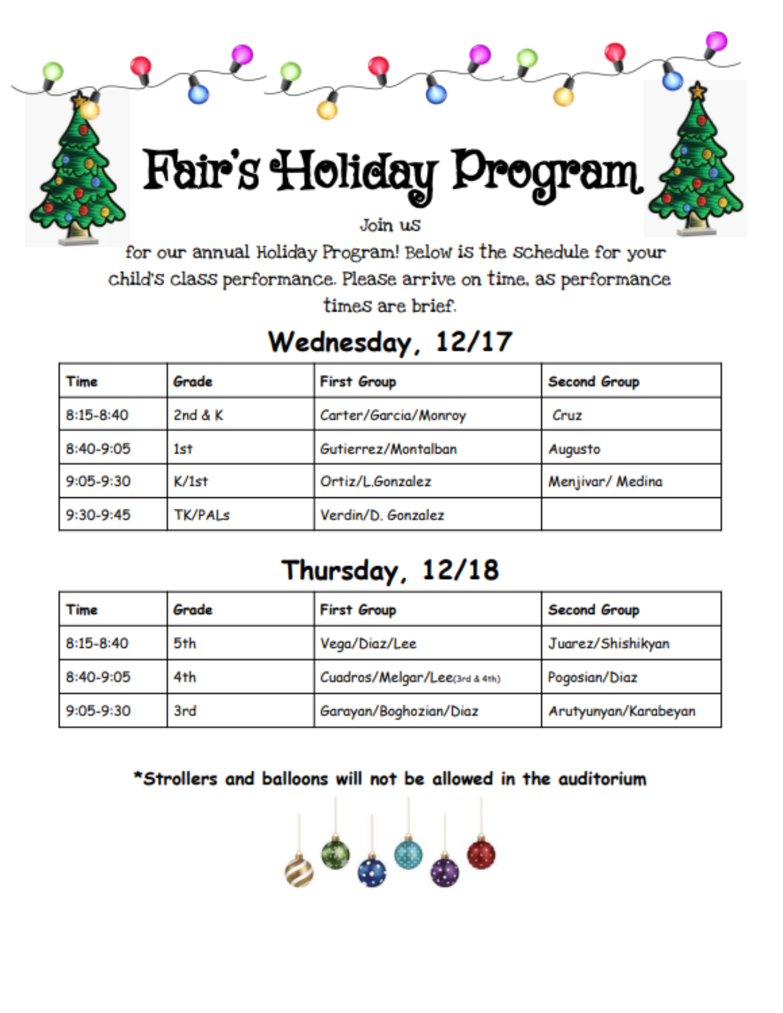 Fair Avenue Elementary School Holiday Program